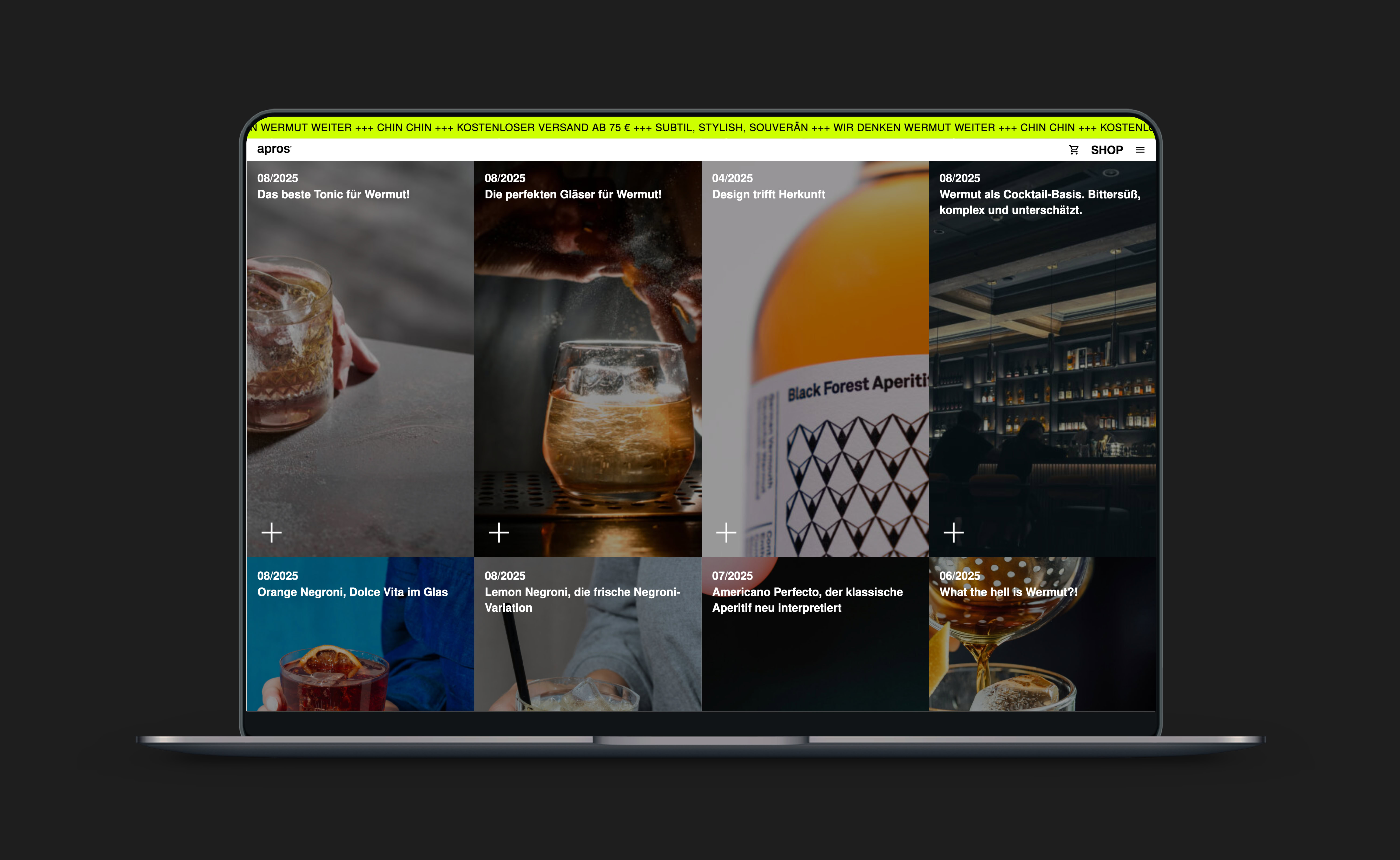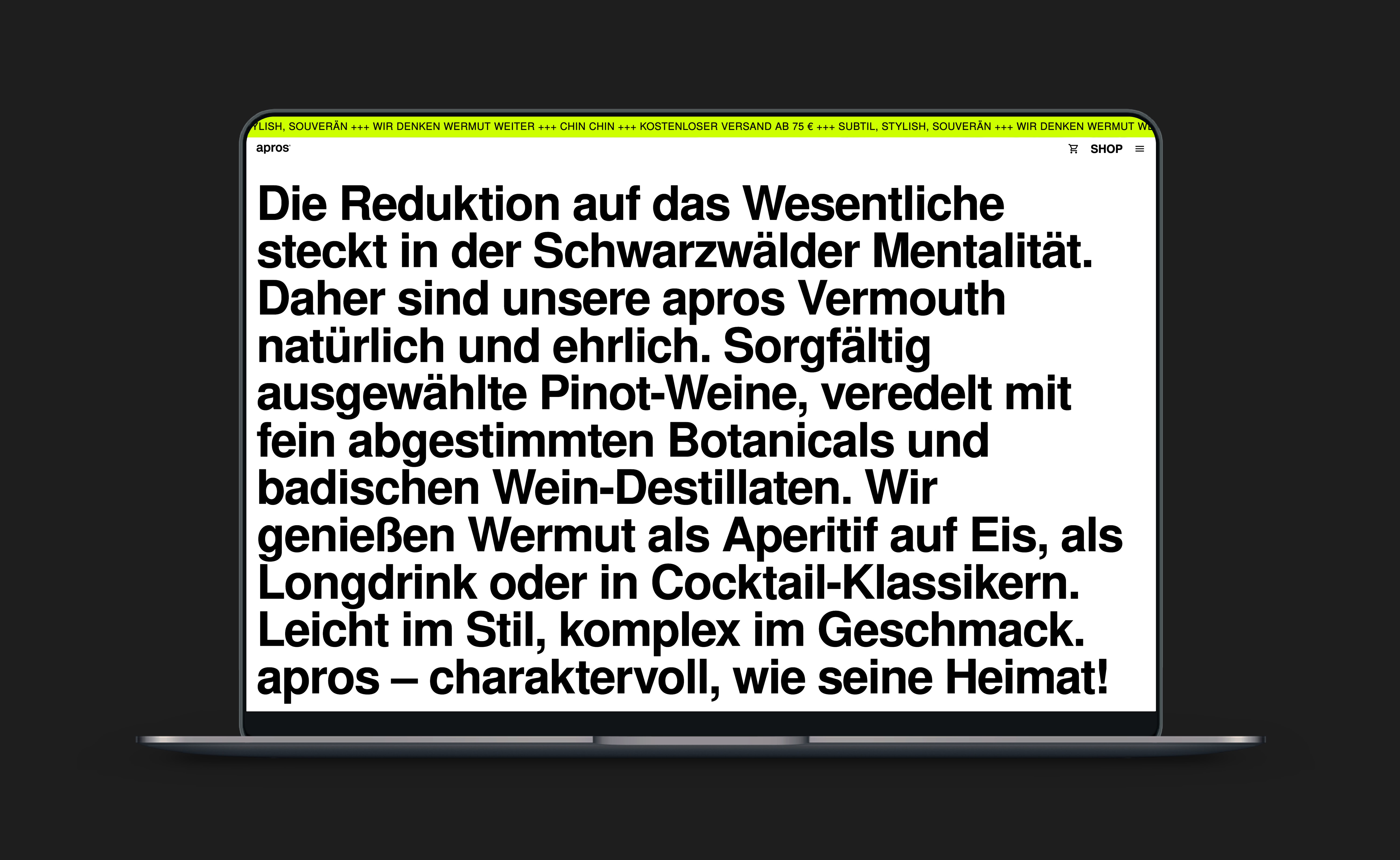 Die digitale Präsenz von apros Black Forest Vermouth vereint Ursprünglichkeit und modernen Lebensstil. Menschen, Bewegung und Atmosphäre machen die Authentizität und den natürlichen Charakter der Marke spürbar. Klare Strukturen und emotionale Bilder formen ein sinnliches, intuitives Markenerlebnis.