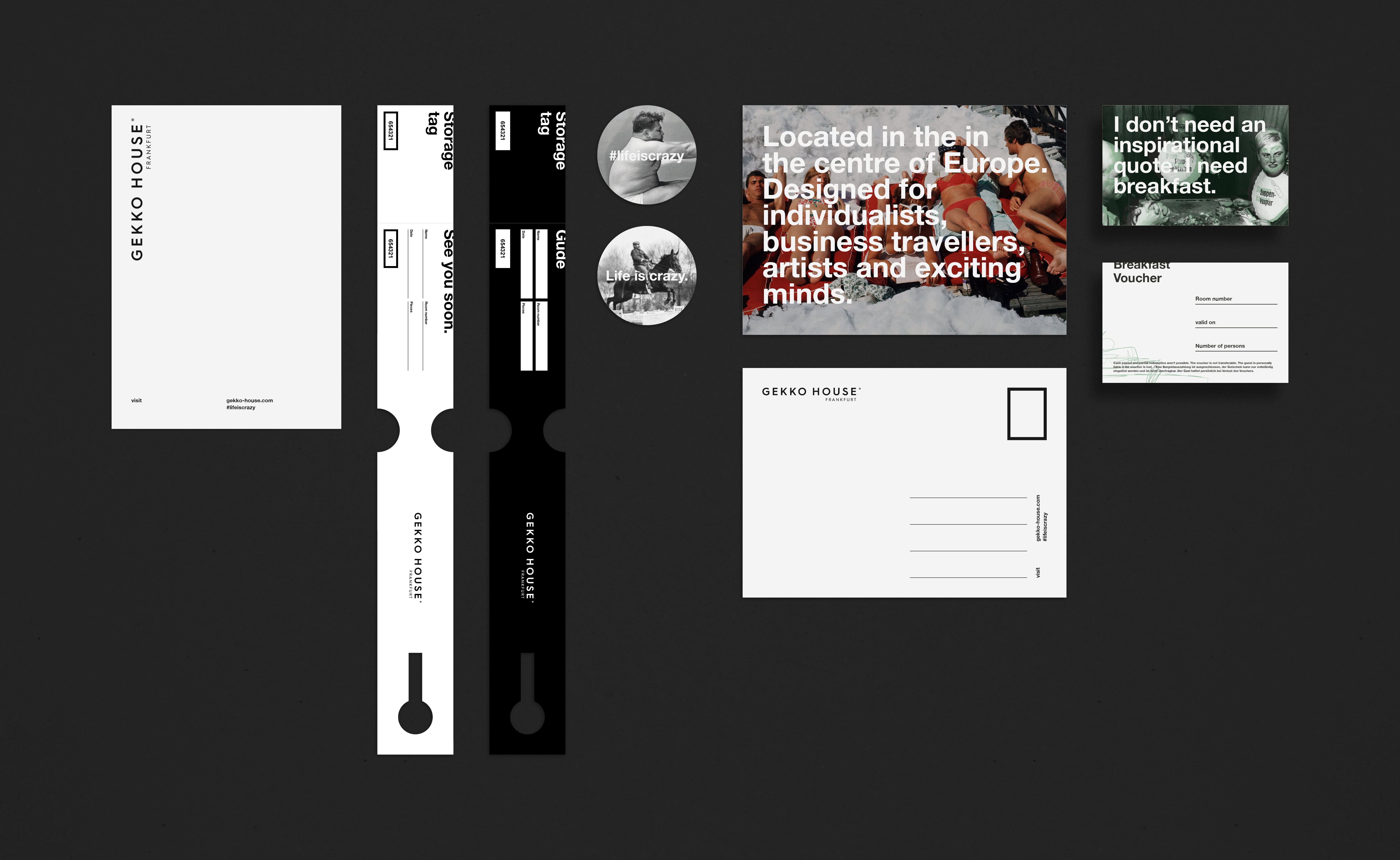 Das entwickelte Branding-Konzept spielt mit Bildern, Weißräumen und einem unkonventionellen Schrifteinsatz. Ergänzt wird dies durch punktuell platzierte Handschriften, Skizzen und monochrome Bilddoppelungen. Das Leitmotiv »Life is crazy« wird dabei über surreale und zugleich authentische Motive aus der Vergangenheit transportiert.