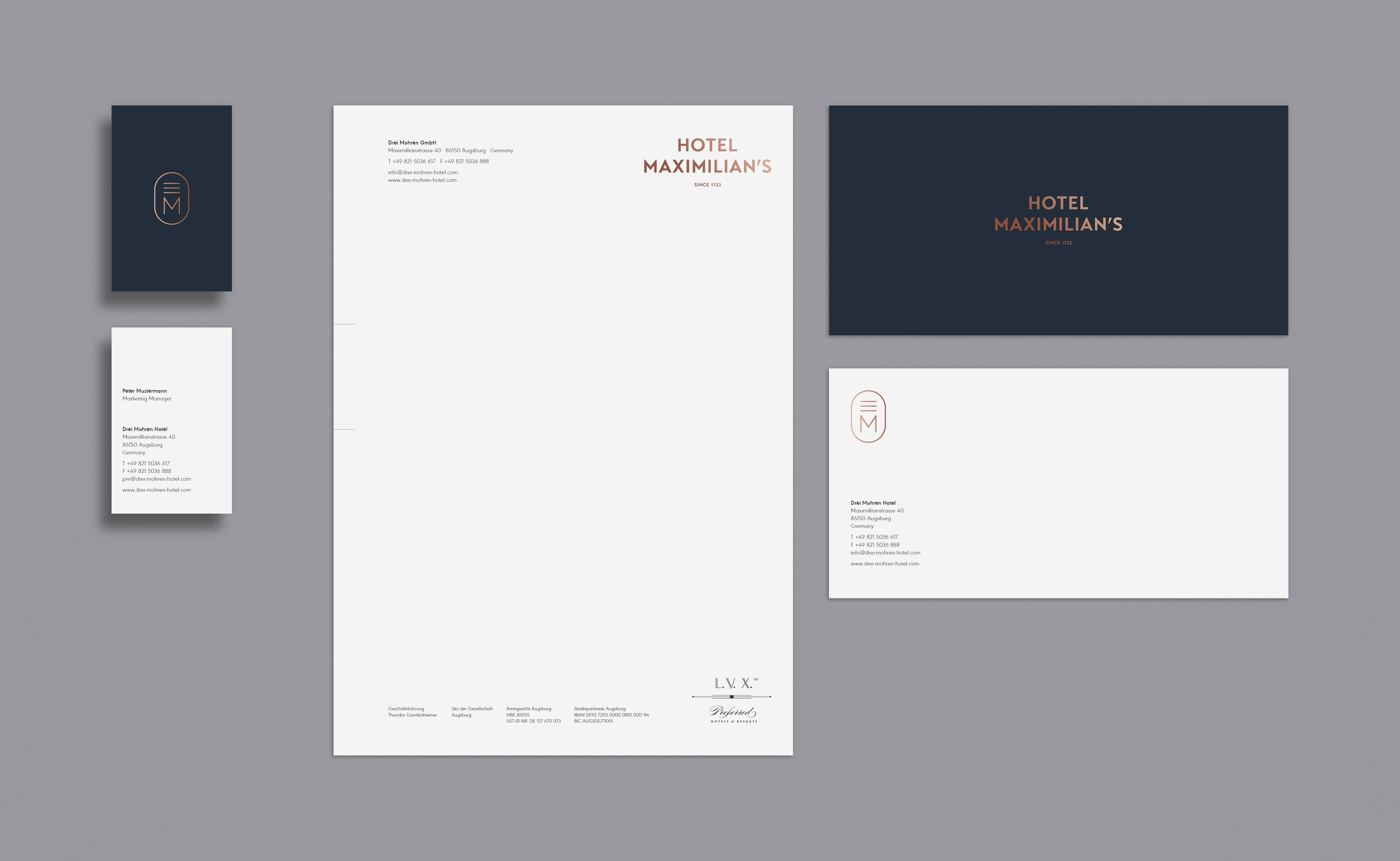 Das traditionsreiche Hotel Maximilians im Zentrum der Fuggerstadt Augsburg empfängt seine Gäste bereits seit 1722. Direkt an der prachtvollen Maximilianstraße, neben dem Schaezlerpalais mit seiner Kunstsammlung gelegen, verbindet es Luxushotellerie und Sternegastronomie mit dem besonderen Charakter einer der ältesten Städte Deutschlands. Das entwickelte Branding-Konzept vereint Tradition und Moderne.