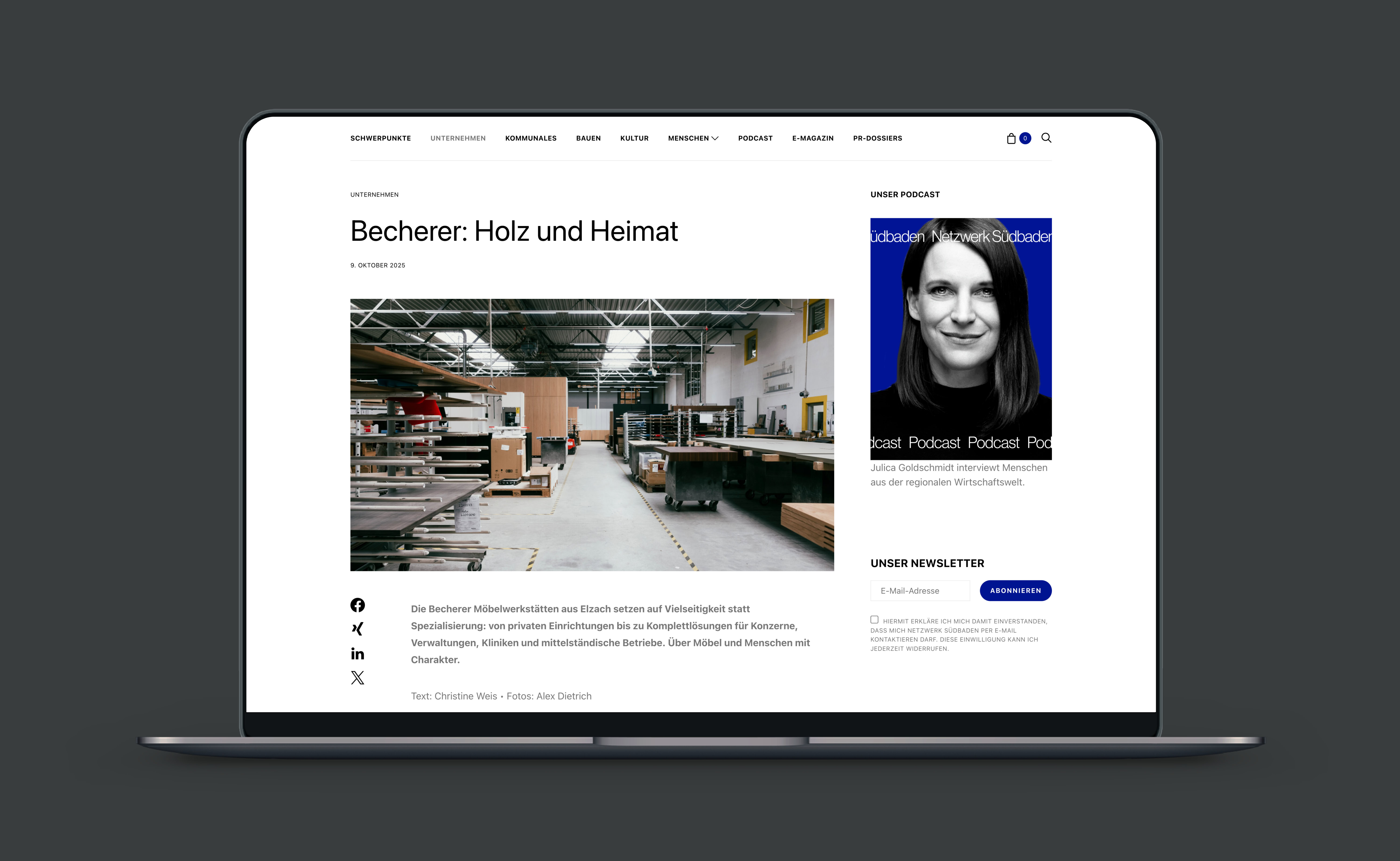 Netzwerk Südbaden steht seit 2014 für unabhängigen Wirtschaftsjournalismus abseits der täglichen Nachrichtenflut. Das Magazin erscheint monatlich in einer Auflage von 5.000–6.000 Exemplaren und berichtet über Wirtschaft, Gesellschaft und Kultur in der Region.