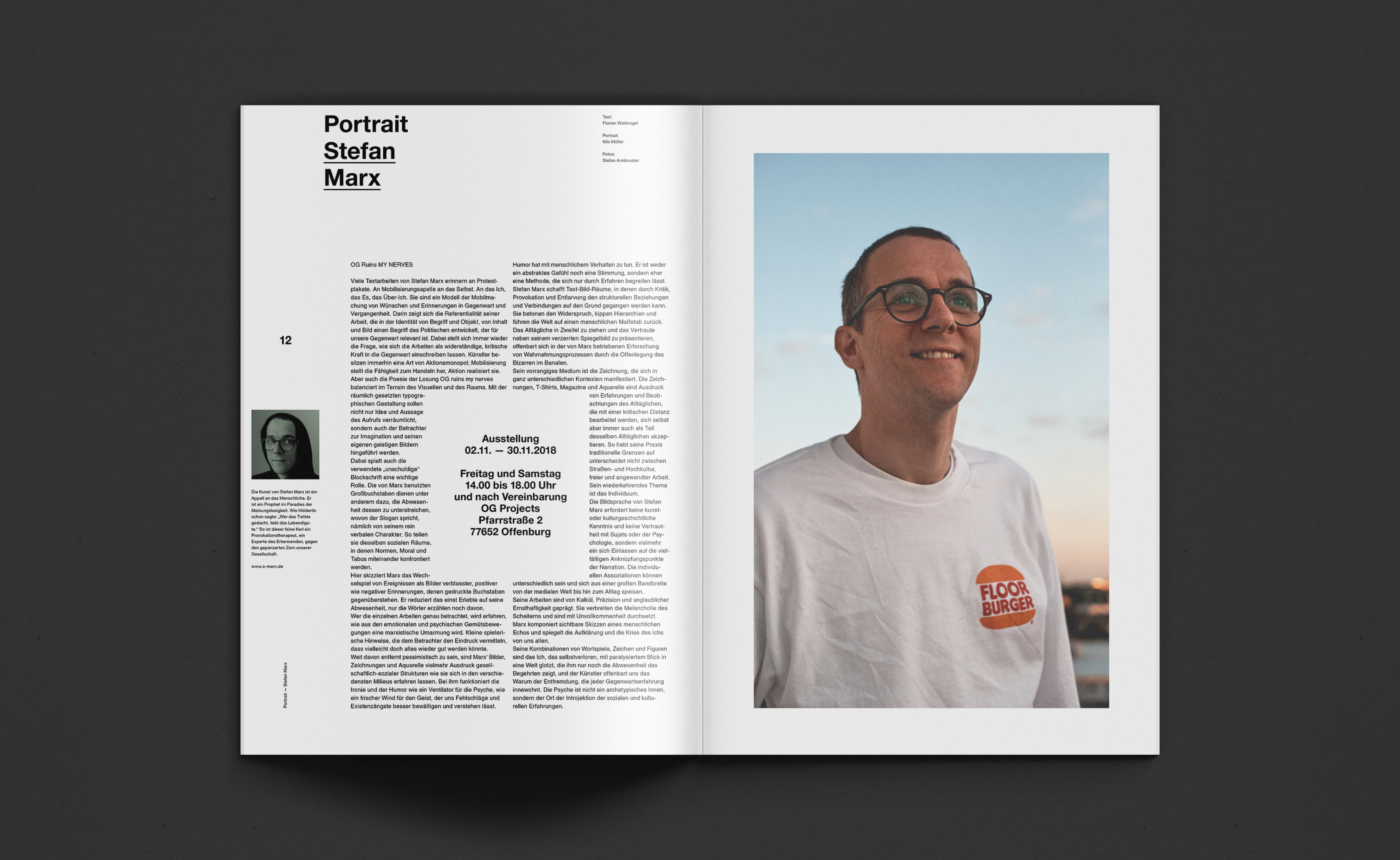 Das Magazin ist klar aufgebaut und reduziert gestaltet, um den Inhalten den nötigen Raum zu geben. Ein wechselnder Farbverlauf dient als formale Klammer und verleiht jeder Ausgabe eine eigene visuelle Identität. Nach sechs Ausgaben wurde das Projekt pandemiebedingt pausiert – seine Relevanz bleibt.