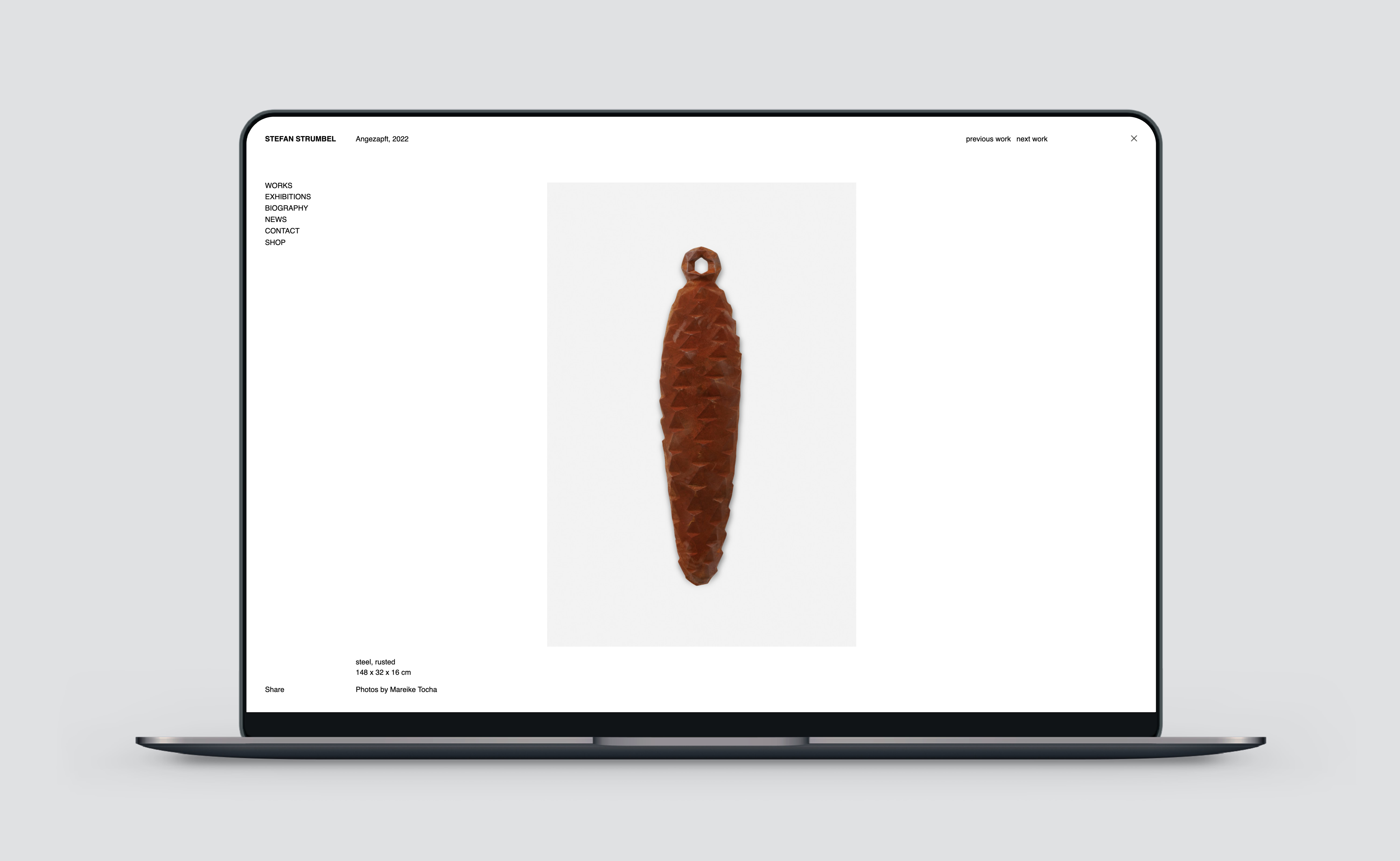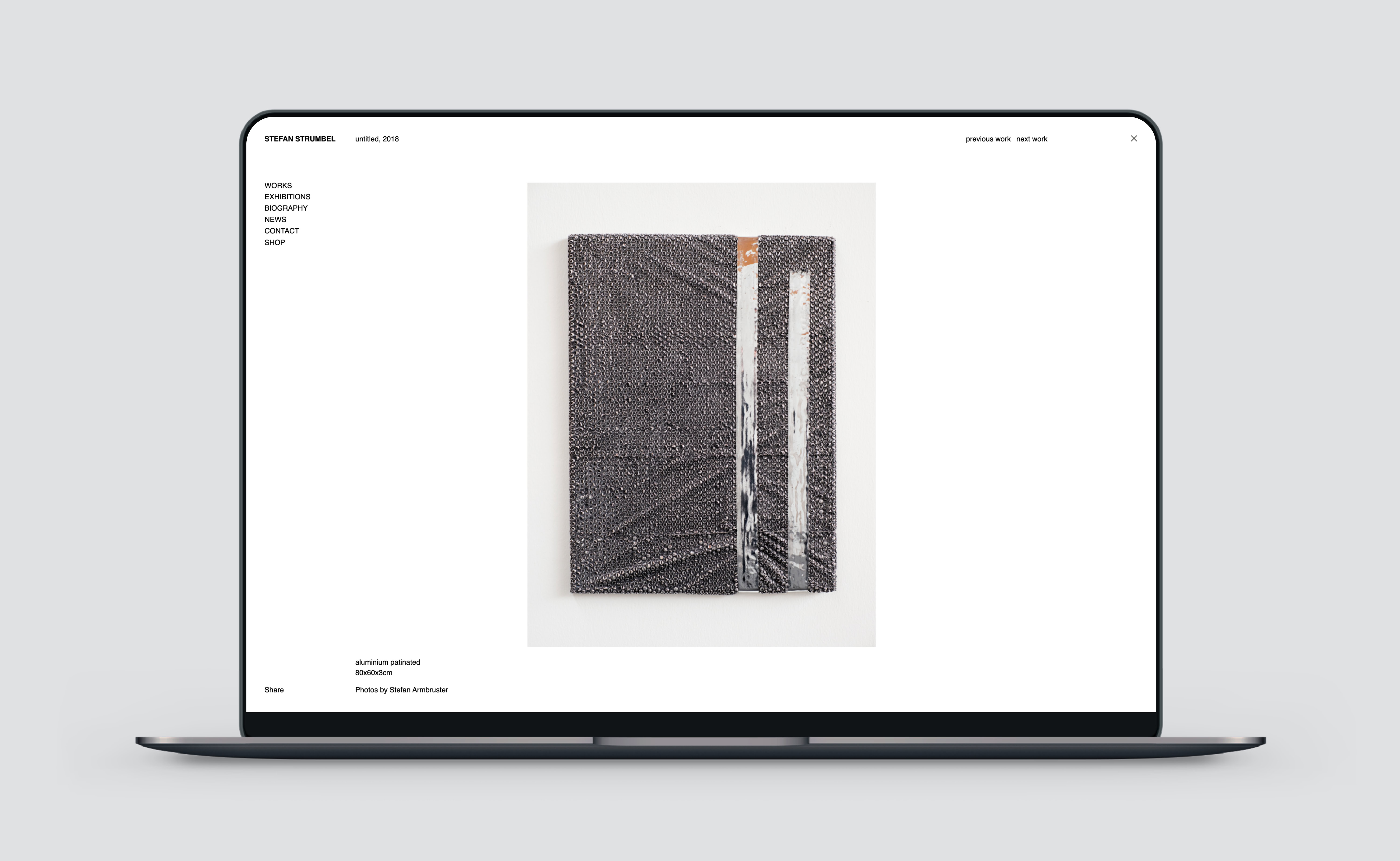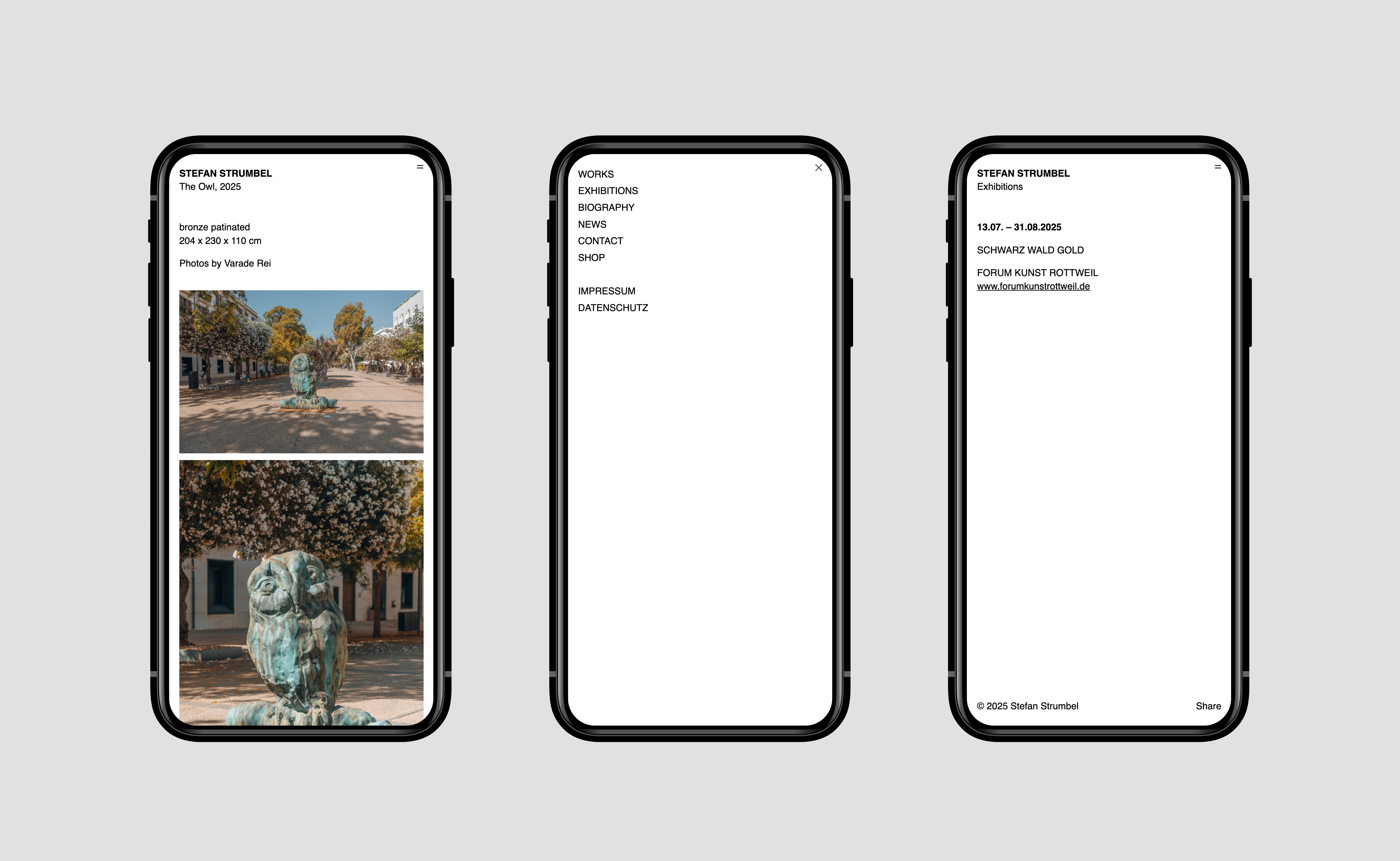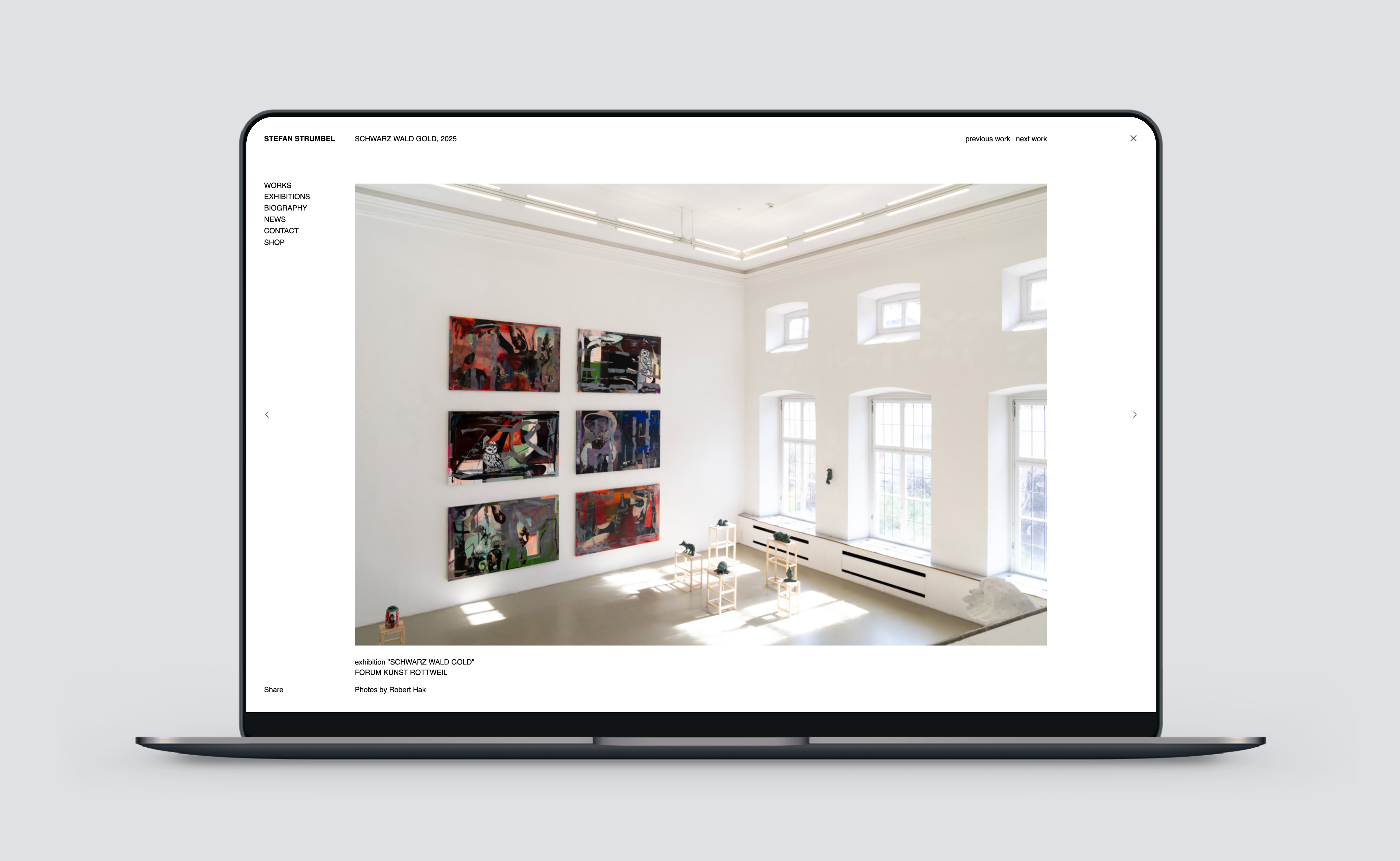 Die digitale Präsenz wurde bewusst zurückhaltend gestaltet. Klare Strukturen, großzügige Weißräume und eine reduzierte Formsprache rücken die Kunst in den Mittelpunkt. Die Seite verzichtet auf visuelle Ablenkung – und schafft damit eine Bühne, auf der die Arbeiten uneingeschränkt wirken können.