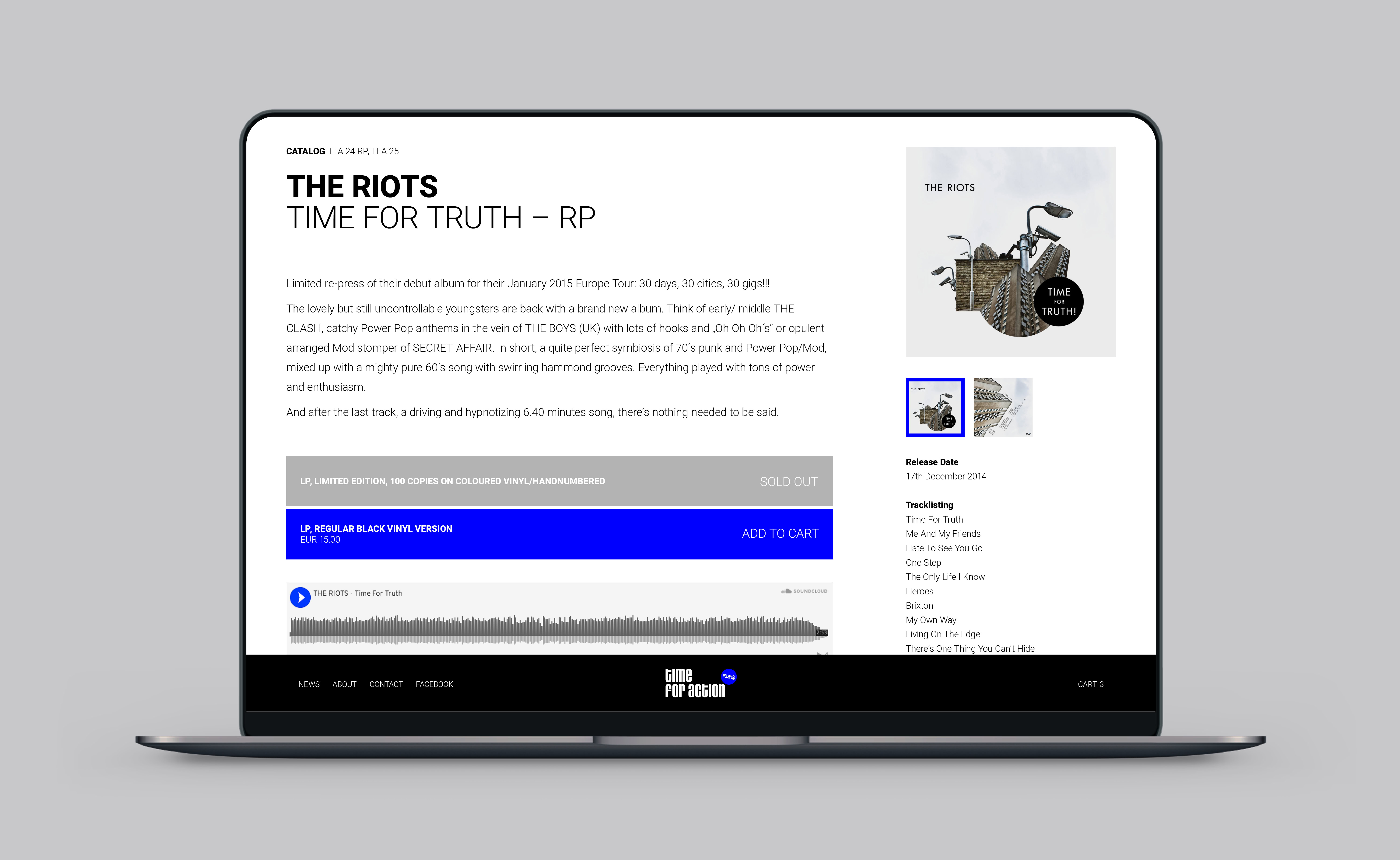 Die Website wurde laut und plakativ gestaltet – ganz im Stil des Labels. Im Mittelpunkt stehen zwei zentrale Funktionen: eine klar strukturierte Diskografie mit detaillierten Informationen zu den einzelnen Bands sowie ein leistungsfähiges, nahtlos integriertes Shop-System mit Check-out und Anbindung an die Warenwirtschaft. Gestaltung und Funktionalität greifen dabei ineinander und schaffen eine Benutzerführung, die ebenso direkt und energiegeladen ist wie die Musik selbst.